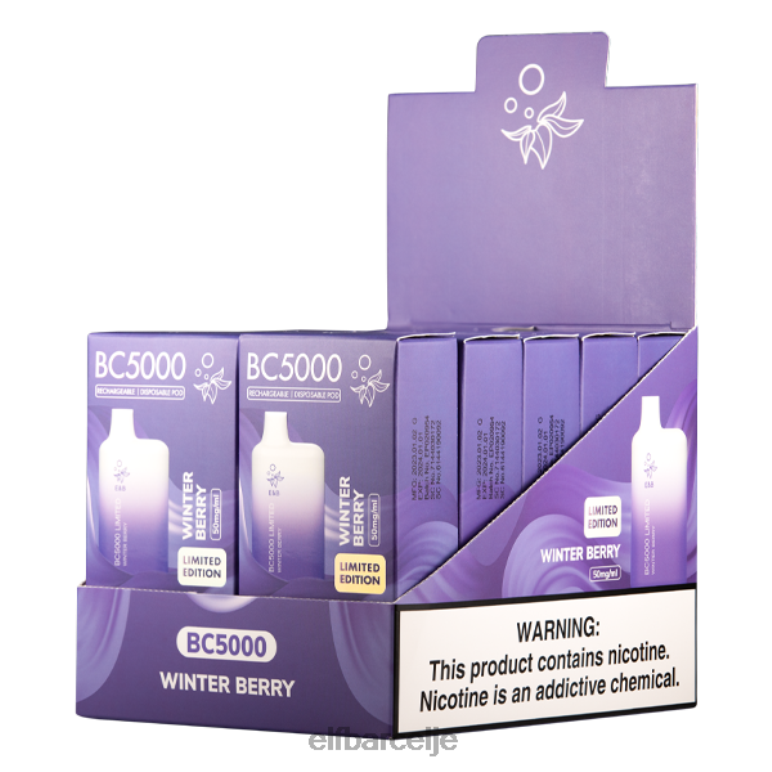 okus uparjalnika za enkratno uporabo: zimski berry e&b bc5000 je omejena izdaja vape za enkratno uporabo, ki uporablja okusno mešanico robide in mete.