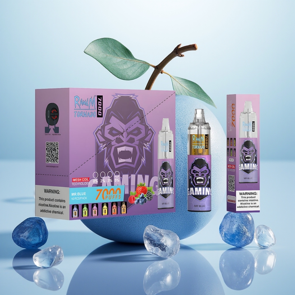 RandM Fumot Tornado 7000 Puffov Dispozabilna Vapa Dr. Modra, 14 ML E-tekočina, 850 MAH Baterija, Mesh Coil, Type-C Port, RGB Luč, Zračno Nastavljivo