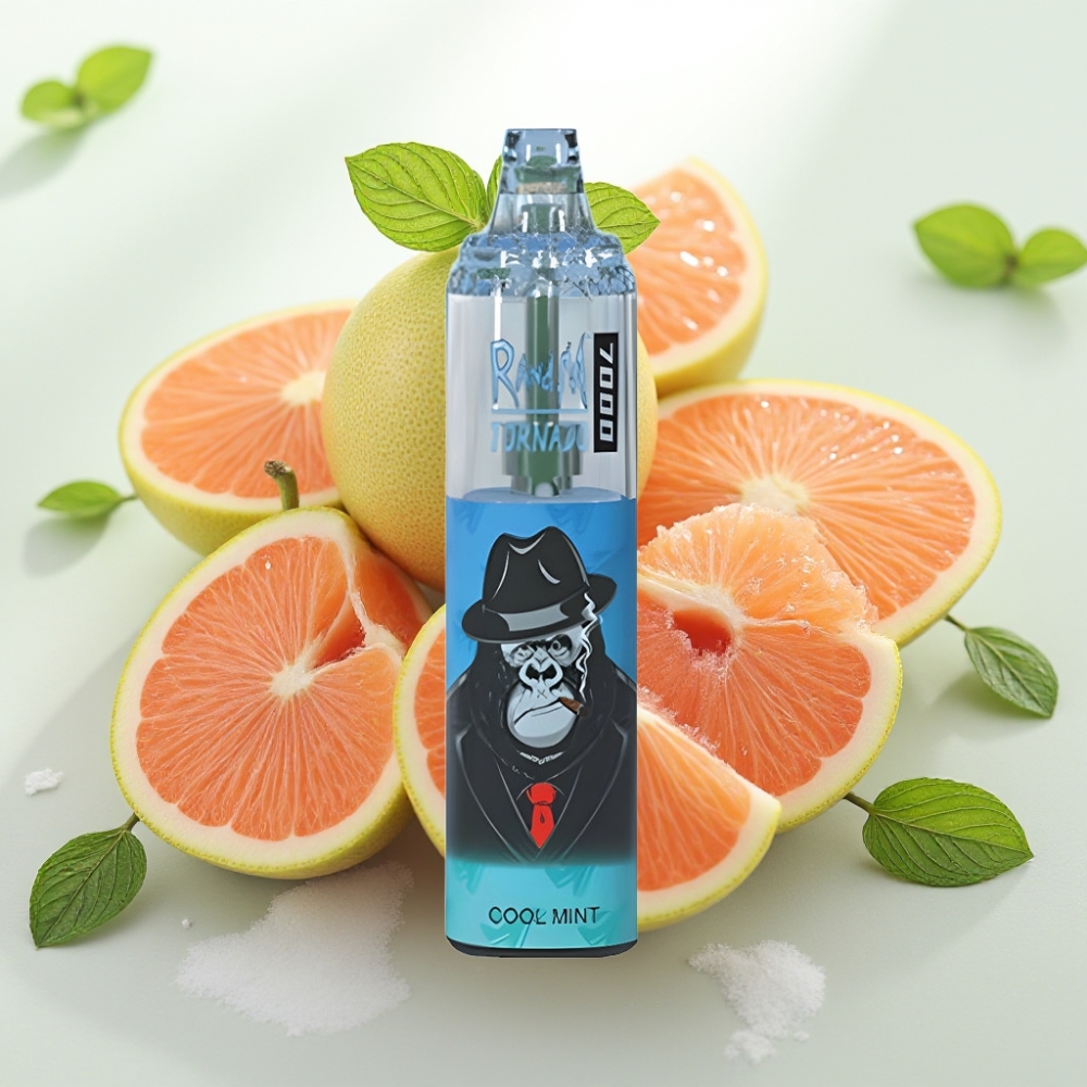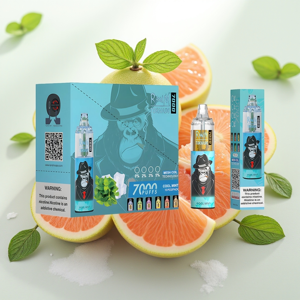 RandM Fumot Tornado 7000 Puffov Dispozabilna Vapa Hladna Meta 14ML 850MAH Mesh Coil Type-C RGB Zračno Nastavljivo 0-5% Nikotina