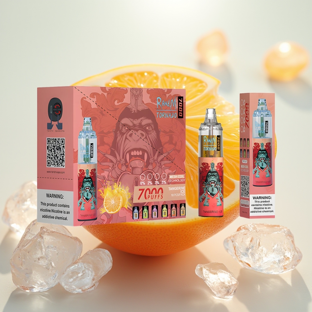 RandM Fumot Tornado 7000 Pufov Enkratna Vapa Mandarinčni Led 14ML 850MAH Mesh Coil Type-C RGB Zračno Nastavljivo 0-5% Nikotina