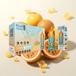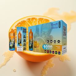 RandM Tornado 9000 Puffs Ponovno Polnjljiva E-cigareta 18 mL Mrežna Tuljava RGB Display Oranžna Soda