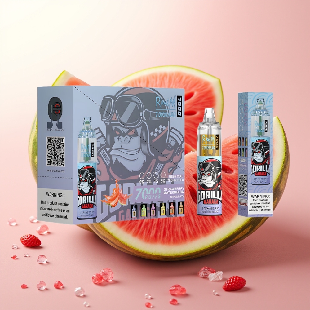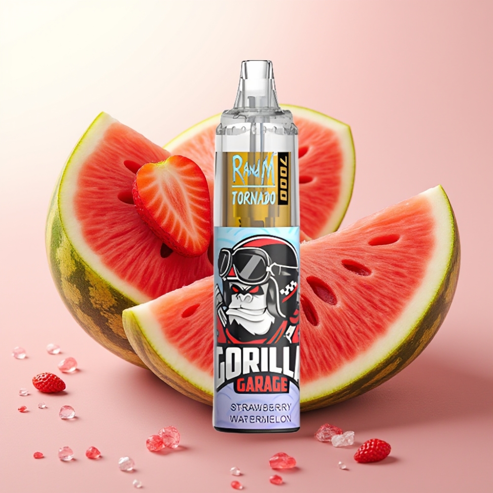 RandM Fumot Tornado 7000 Puffov Disposabil Vape Jagoda Lubenica 14ML 850MAH Mesh Coil Type-C RGB Zrak-Nastavljiv
